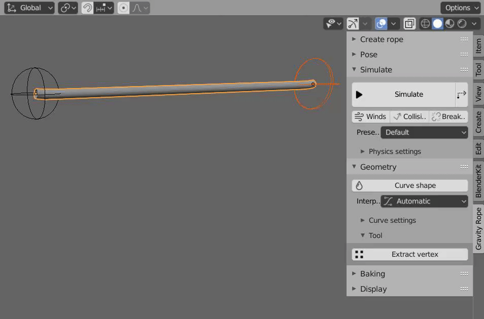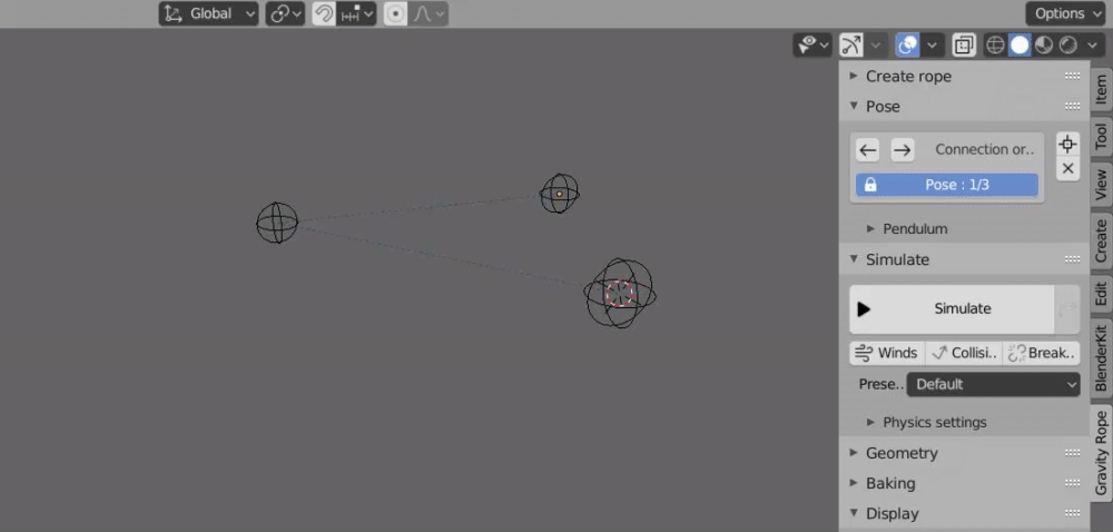 Go to Edit → Preferences → Add-ons → Install… → Choose the GravityRope.zip file Check the box “Gravity Rope” Restart Blender to finish installation.